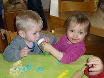 Gegen 9.30 Uhr kommen wir zum Morgenkreis zusammen. Wir machen ein Sing- oder Fingerspiel und frühstücken anschließend gemeinsam. Dabei bieten wir frisches Obst, Gemüse und Joghurt an. Saft und Mineralwasser stehen auch bereit. Beim Frühstück werden dann auch Geburtstage gefeiert.